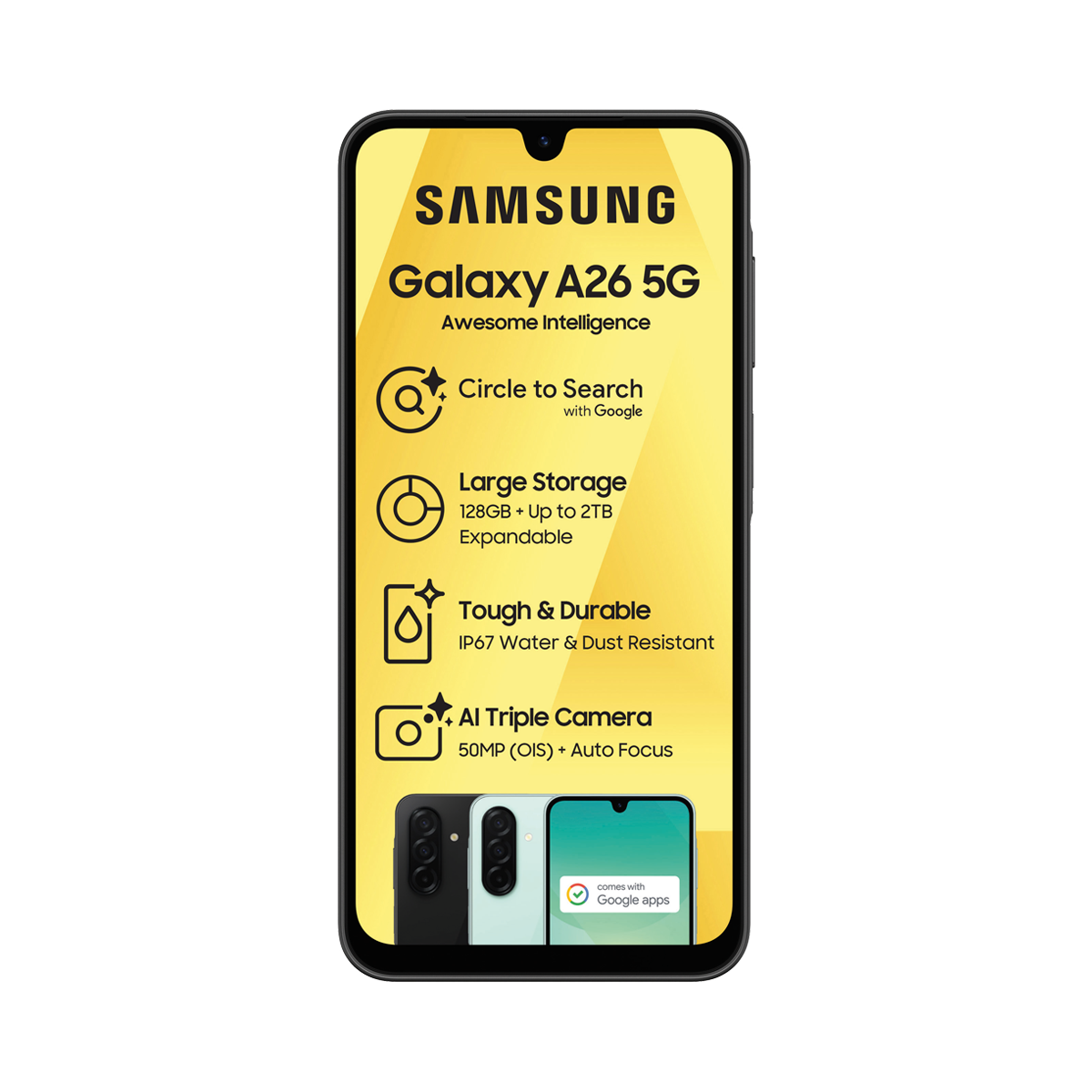 Samsung Galaxy A26 128GB Dual Sim features a 6.7 inch display and a 50MP main camera for crystal clear photos. With 6GB of RAM and 128GB of storage. Plus, a 5000mAh battery.