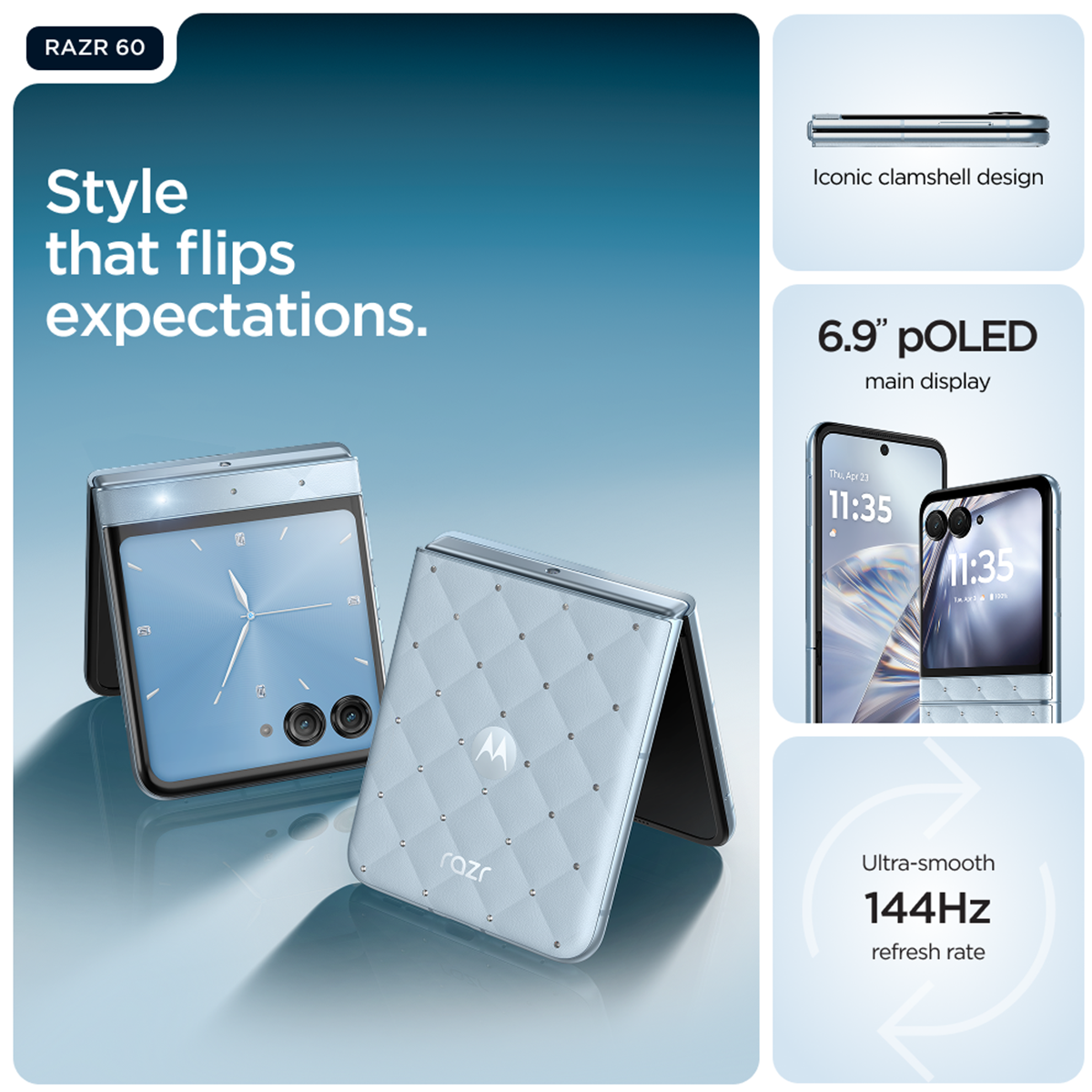 The Motorola Razr 60 Swarovski Edition features a 6.9-inch display, 50MP main camera, and 32MP front lens, 8GB RAM and 256GB storage, 4500mAh battery an Ice Melt finish elevates its sophisticated design.